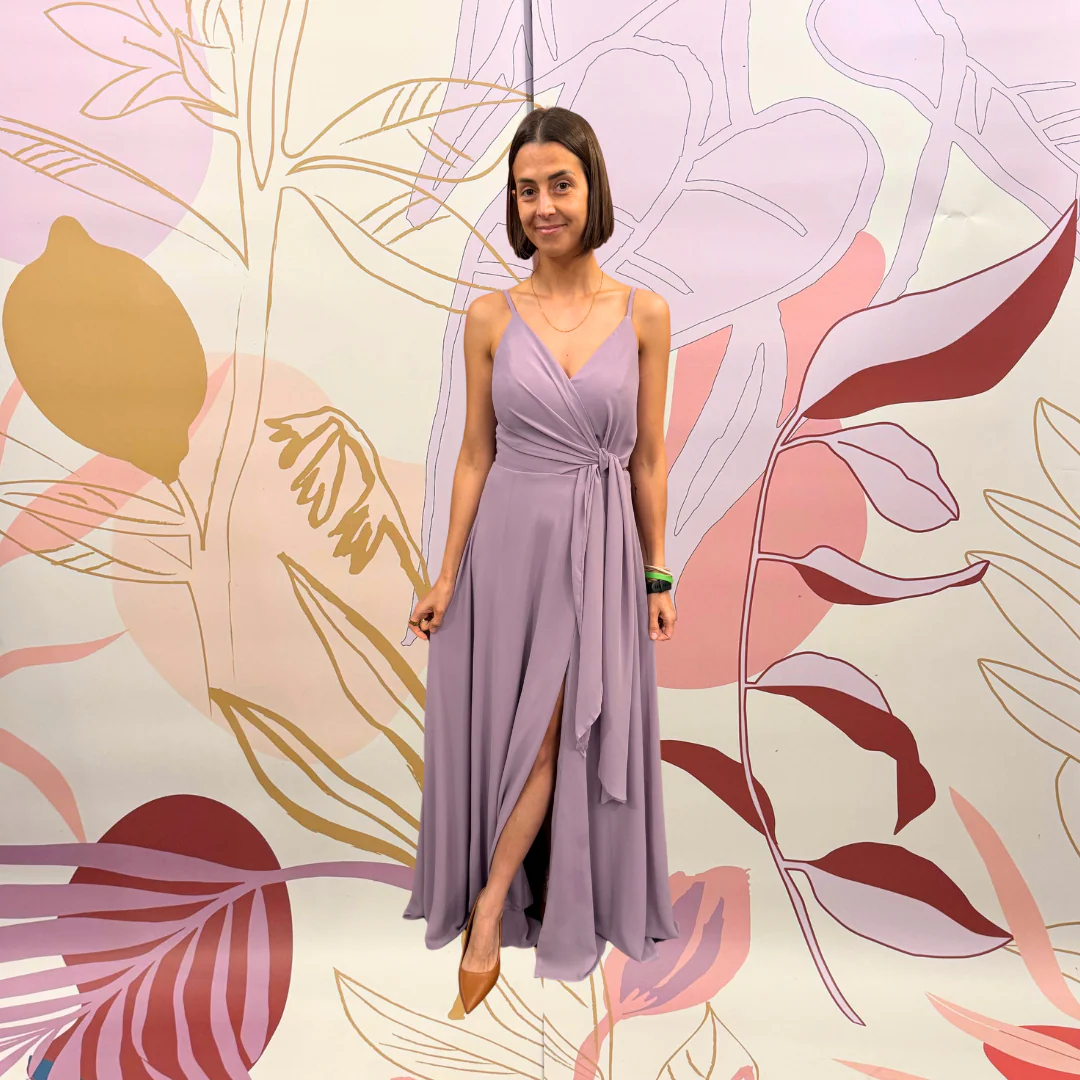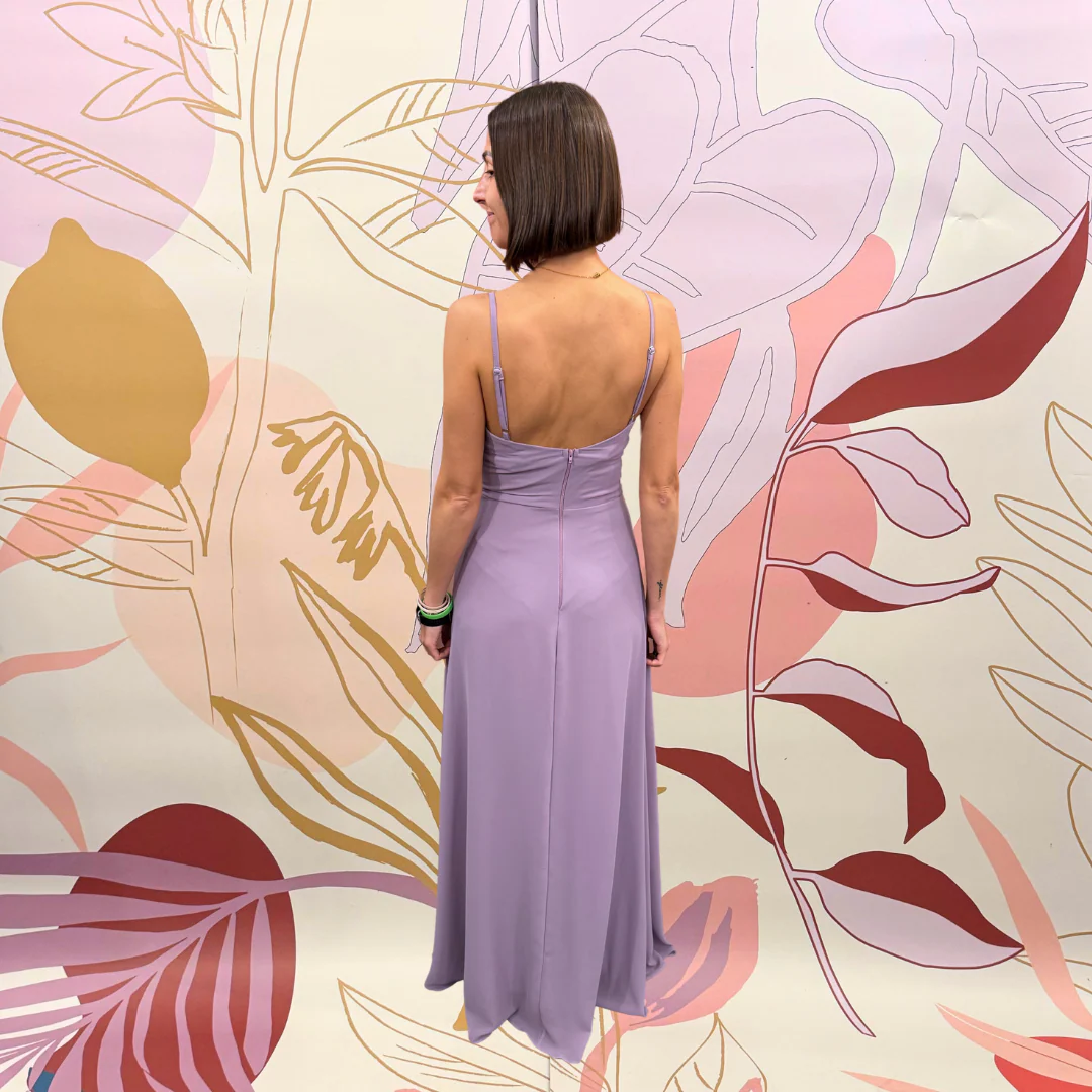 Abito con scollo a V e nastro in vita.