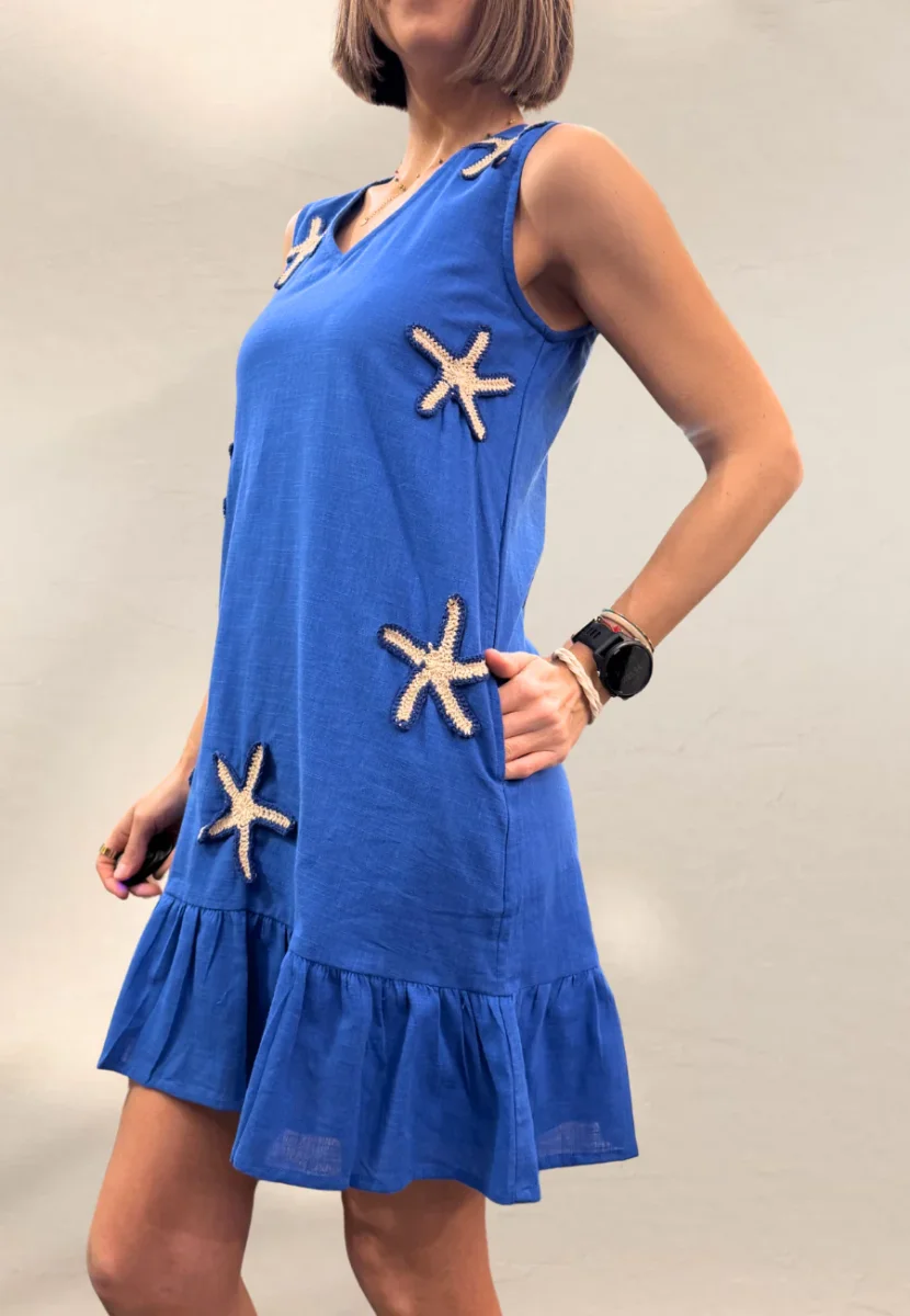 Abito corto con balza finale. Vestibilità regolare.