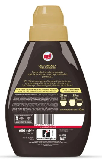 Dosaggio: 25ml in 4/5 kg o 35ml in 6/8kg. Per un’extra profumazione + 10ml
