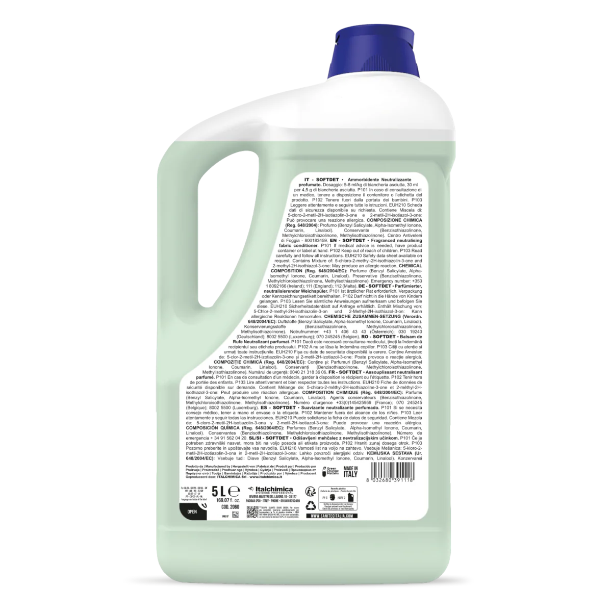 Dona una morbidezza raffinata a ogni capo, proteggendo i tessuti dall’accumulo di cariche elettrostatiche e prevenendo l’ingiallimento. Adatto a tutti i tipi di tessuto, sia bianchi che colorati, si integra perfettamente con sistemi di dosaggio automatici o manuali. Lascia una delicata e piacevole fragranza, esaltando la cura e l’eleganza della tua biancheria.