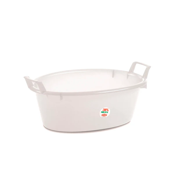 Bacinella ovale multiuso realizzata in polietilene colore bianco, fin dai tempi delle nostre nonne le più usate per tantissimi utilizzi.