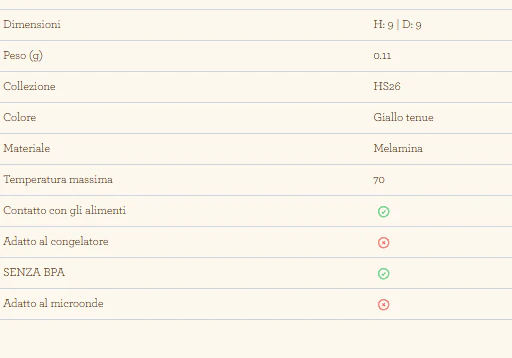 La melamina non è adatta alla conservazione degli alimenti e gli utensili da cucina in melamina sono destinati esclusivamente a mescolare e servire.