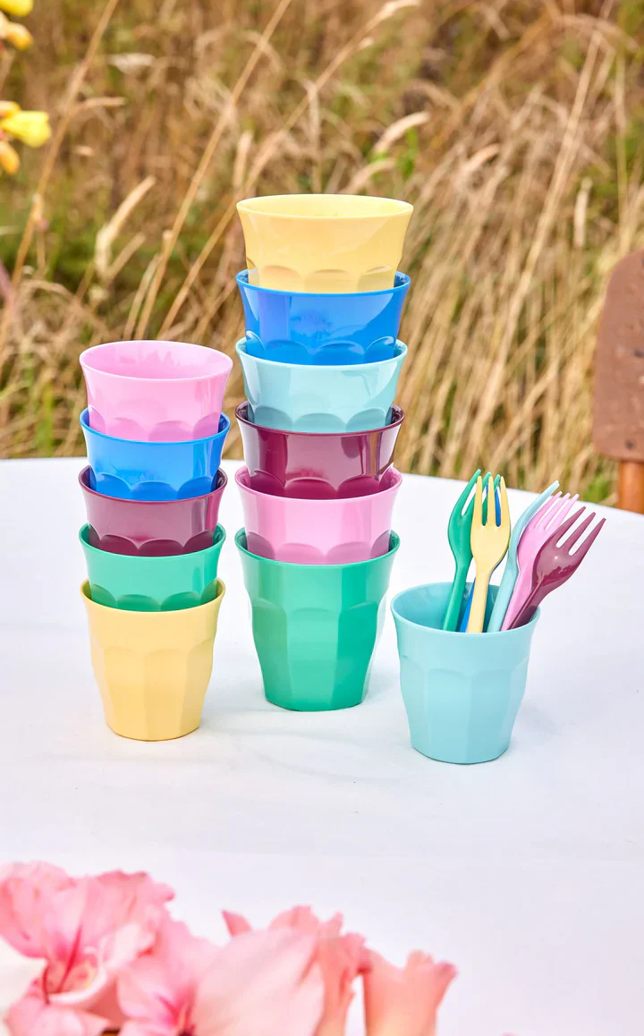Bicchiere medium basic in melamina RICE nei nuovi adorabili colori Viva La Vida. Sono super pratiche e possono essere usate per quello che vuoi… come bicchieri, caffè, per le matite o per i picnic. Si prega di notare che i prodotti in melamina non sono adatti per il microonde.