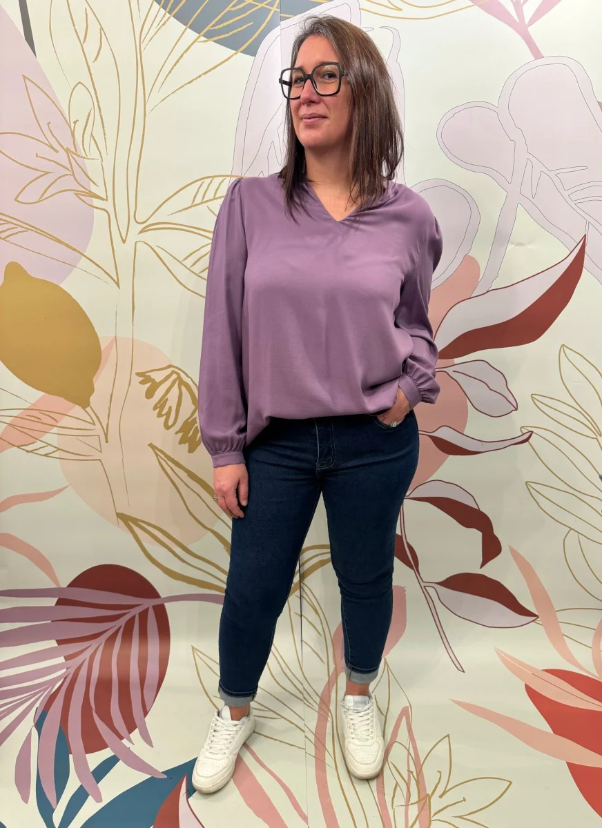 Blusa con manica a sbuffo. Vestibilità curvy.100% Rayon