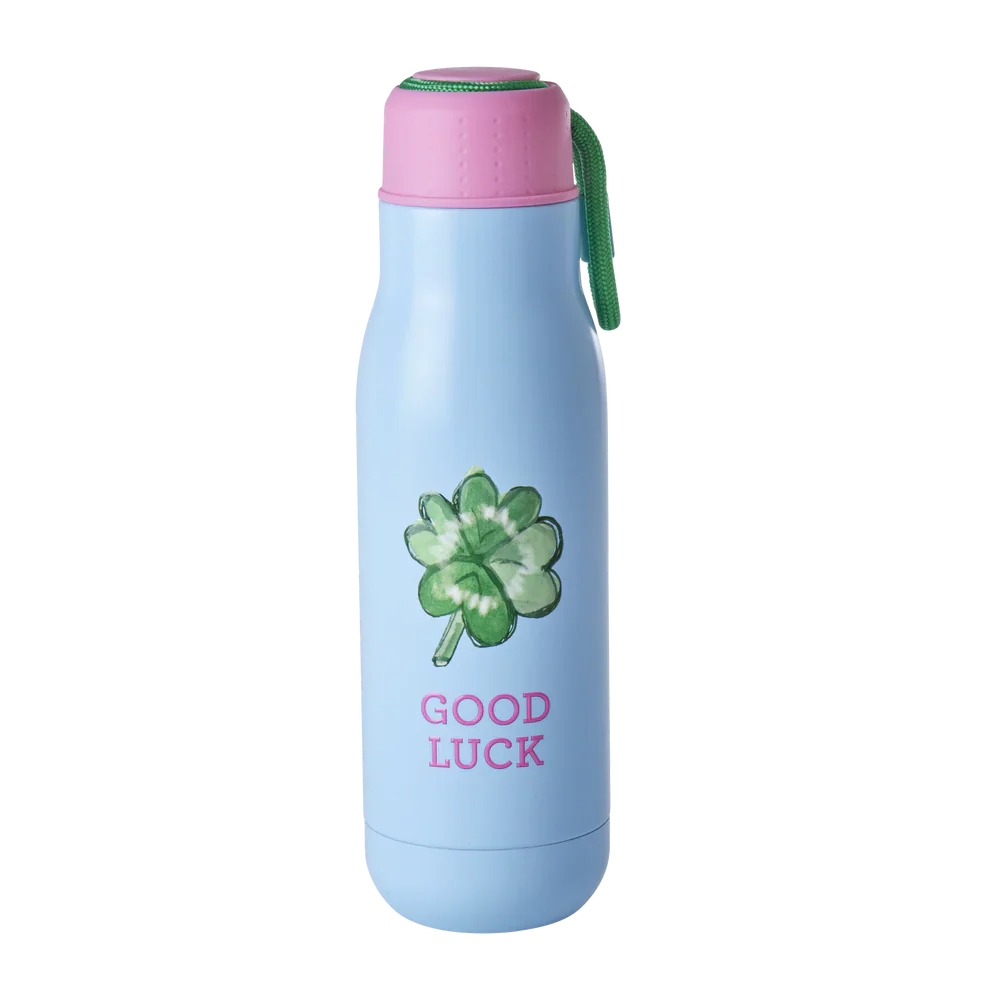 Illumina la tua giornata con la nostra meravigliosa borraccia blu con stampa “Good Luck”! Questa pratica compagna contiene 500 ml della tua bevanda preferita, mantenendola calda per 12 ore o fredda per 24 ore. Hai voglia di cambiare? Cambia il colore del coperchio con uno diverso, a seconda del tuo umore. Inoltre, il cinturino sul coperchio la rende perfetta da appendere alla borsa quando sei in giro.