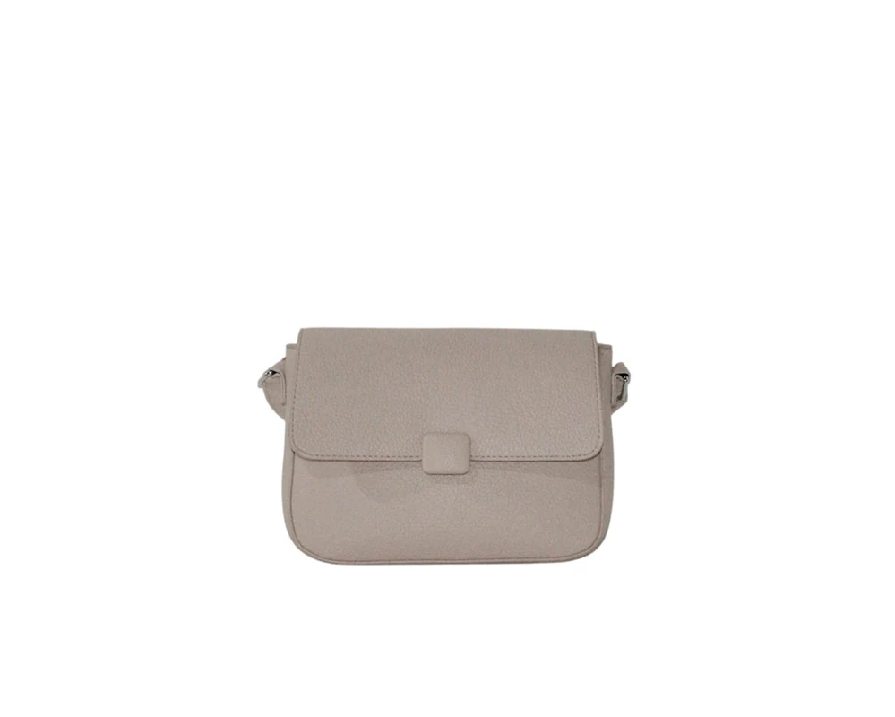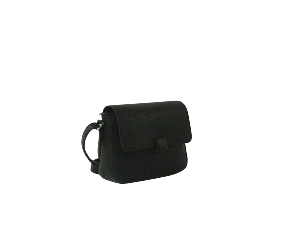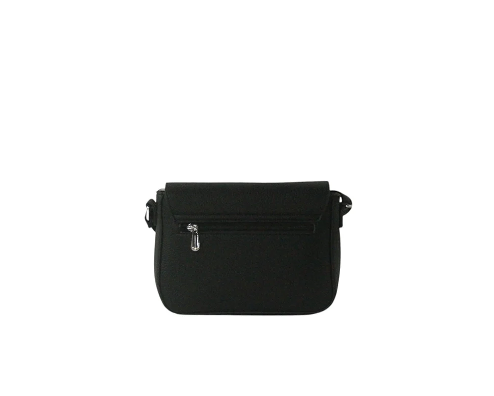 Borsa a tracolla con patta, zip interna e chiusura a clip.
