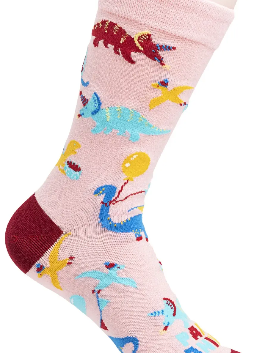 Realizzati in un tessuto morbido e traspirante, questi calzini garantiscono comfort per tutto il giorno, mostrando una stampa giocosa di dinosauri che sicuramente delizierà. Che tu sia a casa, al lavoro o in avventura, questi calzini aggiungono un tocco divertente a qualsiasi outfit.