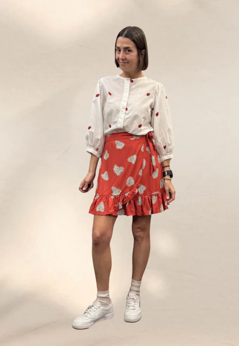 Camicia dalla linea vintage, dal taglio morbido, con maniche a 3/4 a palloncino e scollo tondo