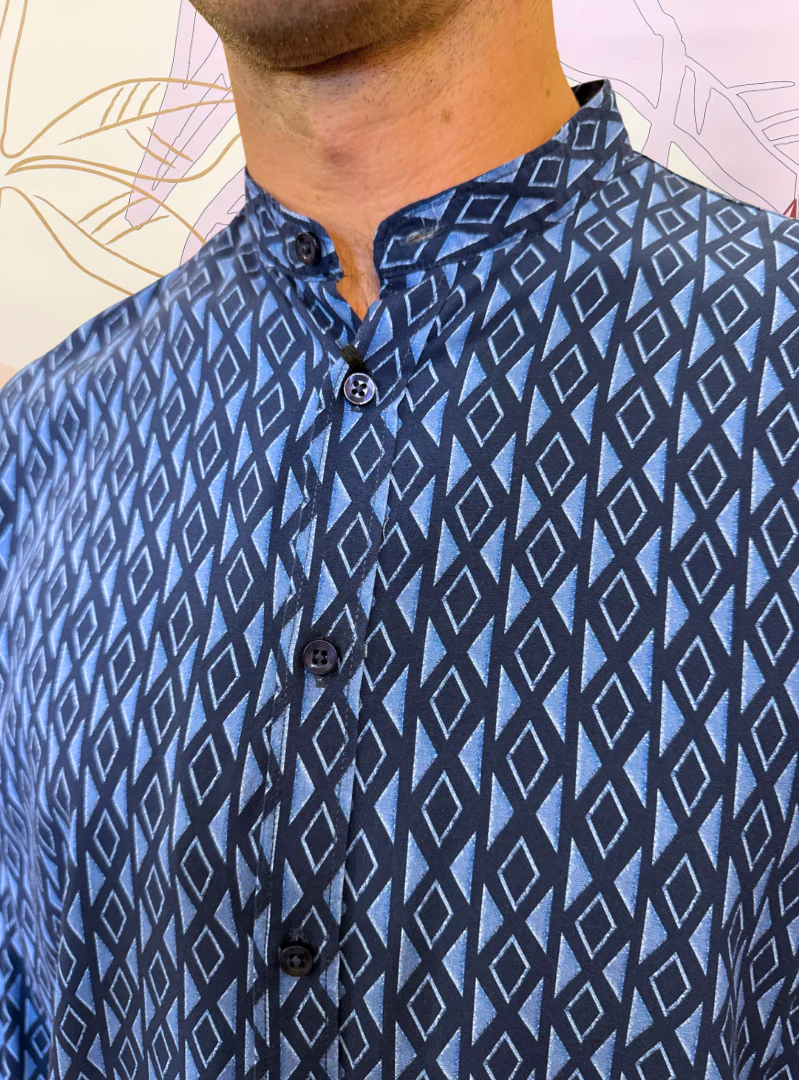 Camicia manica lunga collo alla francese. Vestibilità slim. 100% viscosa