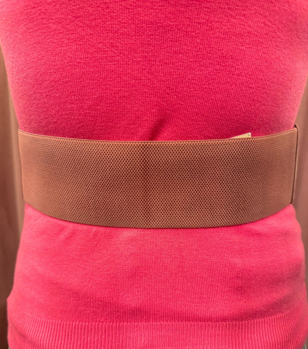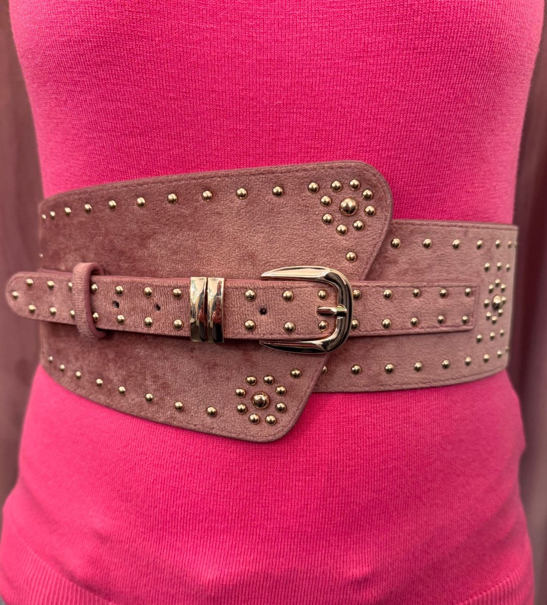 Cintura elasticizzata con borchie, altezza 7 cm lunghezza 80 cm non estesa.