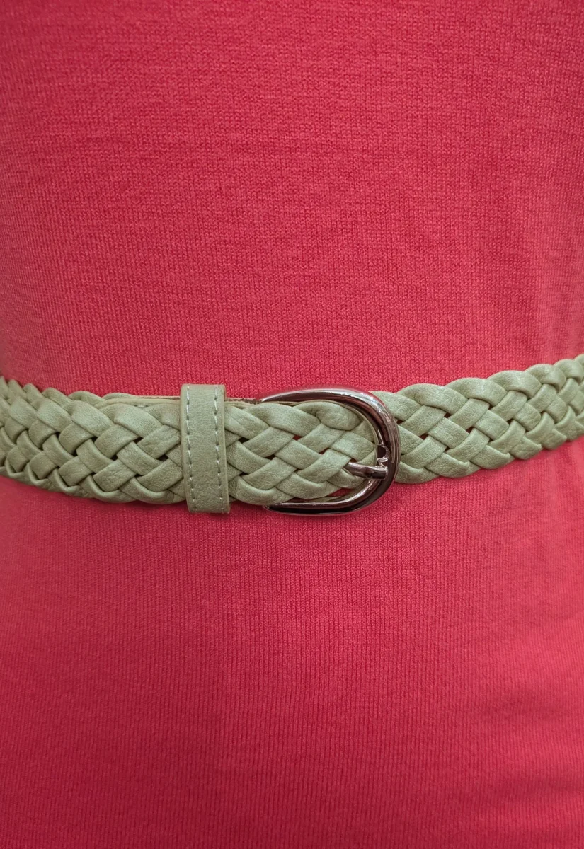 Cintura ecopelle intrecciata regolabile, altezza 3 cm lunghezza 110 cm.