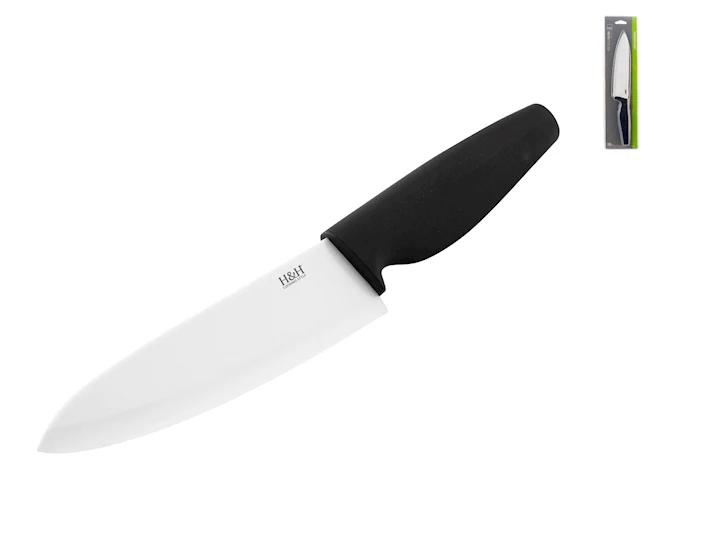 Coltello da cucina con lama in ceramica bianca e manico antiscivolo nero