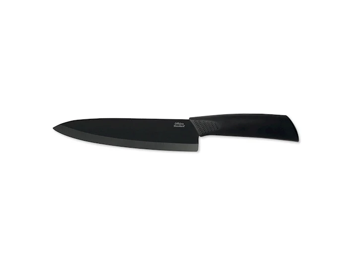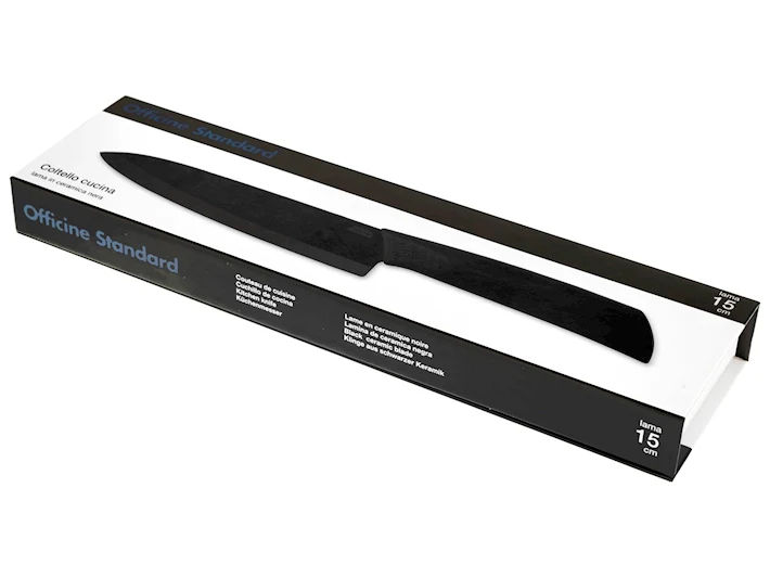 Coltello da cucina professionale con lama in ceramica nera, ideale per tagliare verdure, frutta e carni con precisione e facilità. La lama in ceramica mantiene l’affilatura più a lungo rispetto all’acciaio tradizionale e non ossida, garantendo tagli netti senza alterare i sapori degli alimenti. Il manico antiscivolo in soft touch nero offre una presa salda e confortevole, anche con le mani bagnate.