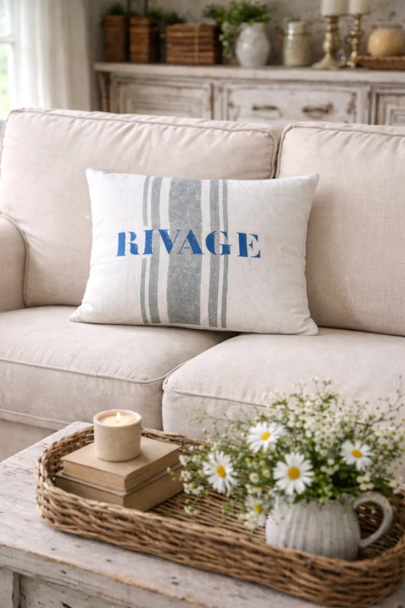 Colore : Avorio con Riga Grigia e Scritta Blu