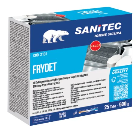 Detersivo in pastiglie specifico per pulizia friggitrici professionali, cestelli e superfici in acciaio della vostra friggitrice.
