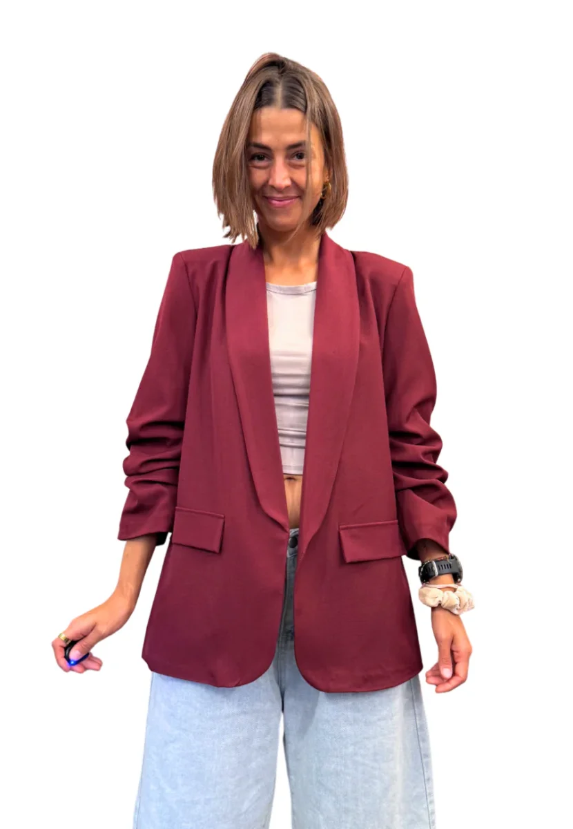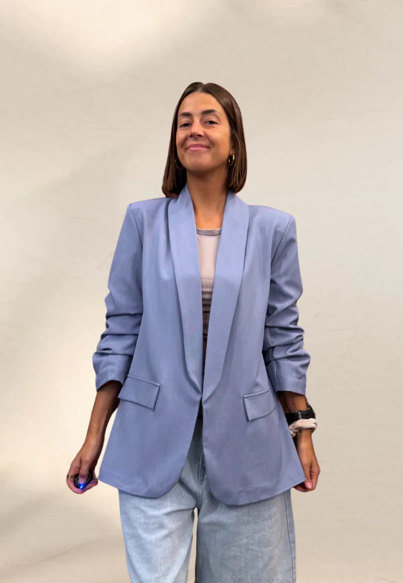 Giacca con vestibilità over, foderata, manica arricciata, non ha bottoni, è una taglia unica, arriva a vestire una 48. E’ il capo giusto per completare un outfit, da quello più ricercato a quello più easy.