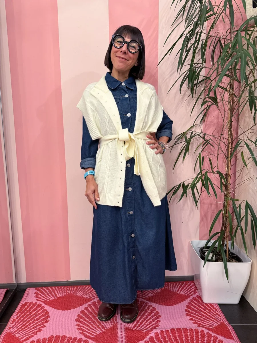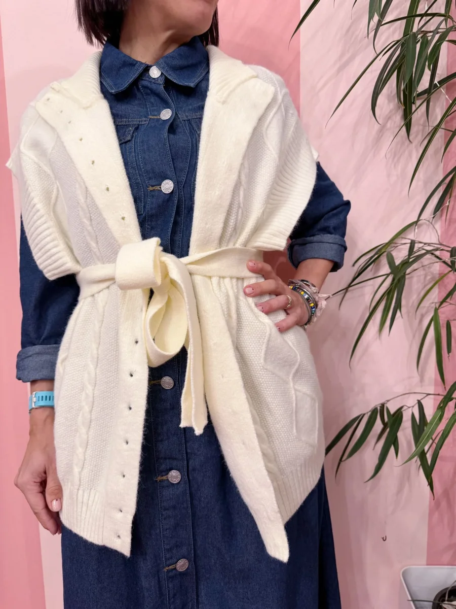 Gilet con bottoncini a perlina, davvero caldo e coccoloso, puoi usarlo per completare il tuo outfit ma anche come capospalla.