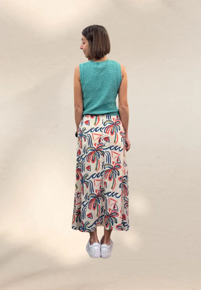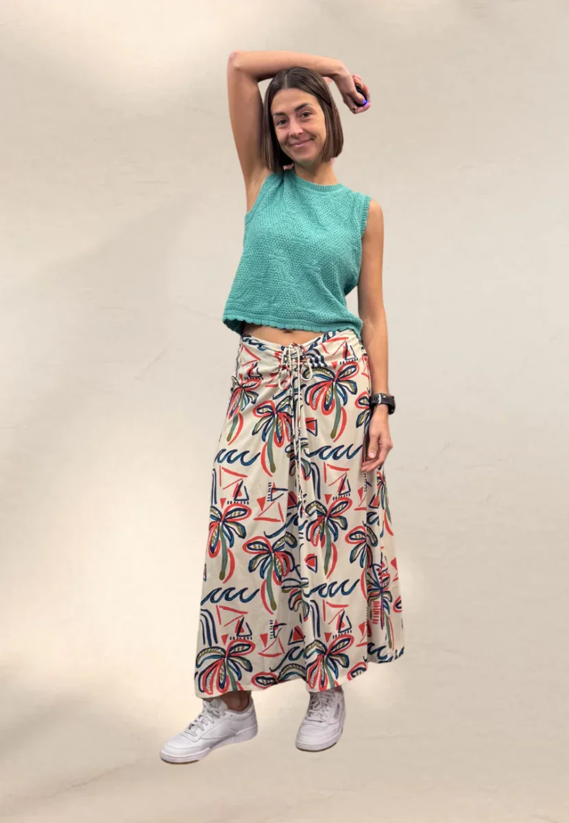 Gonna in cotone taglio morbido, con coulisse per chiuderla davanti.
