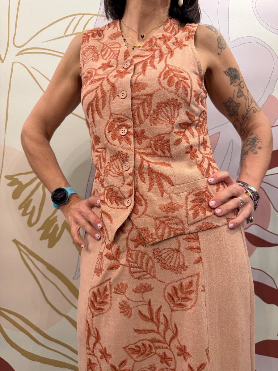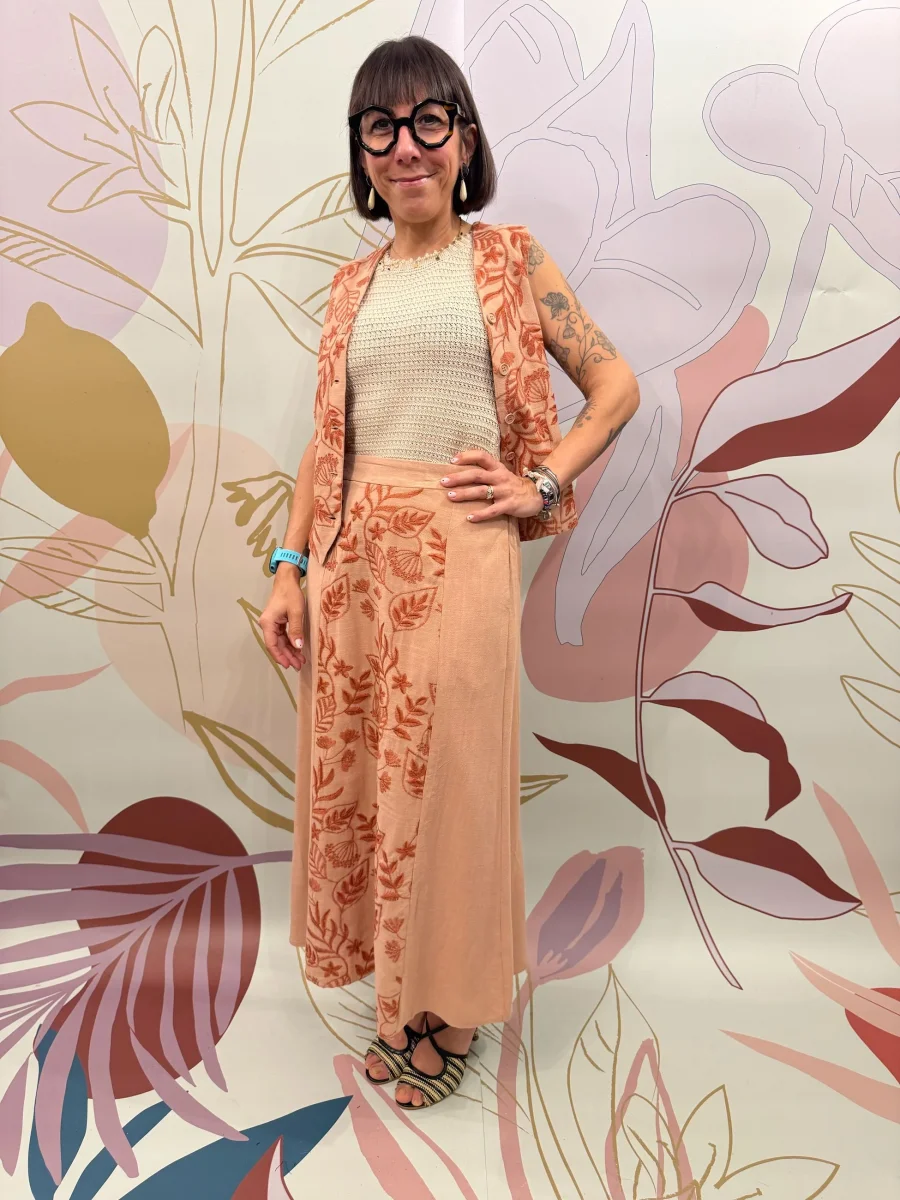 Gonna con inserto ricamato, tasca a filo elastico dietro.