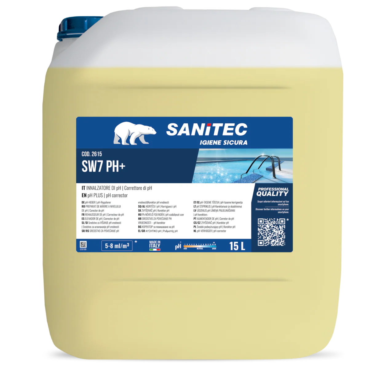 SW7 pH+ 15LT garantisce il mantenimento ottimale del pH tra 7,2 e 7,4, assicurando un equilibrio ideale per il trattamento delle acque. Questo controllo preciso riduce la necessità di frequenti ricambi d’acqua, contenendo i costi di gestione. Inoltre, favorisce l’efficacia dei processi di precipitazione di metalli come ferro e manganese, migliorando la qualità dell’acqua. Infine, contribuisce a limitare le irritazioni oculari, offrendo un’esperienza più confortevole e sicura.