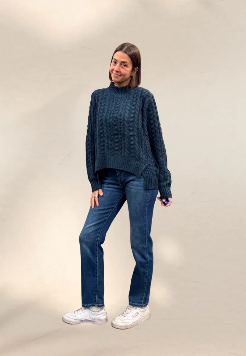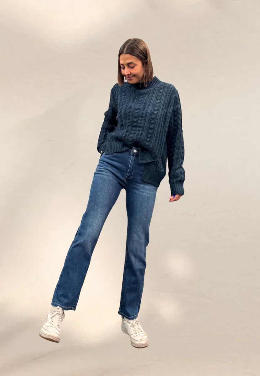 Vita alta, Taglio dritto (gamba dritta dalla coscia all’orlo, aderente ma non attillata),