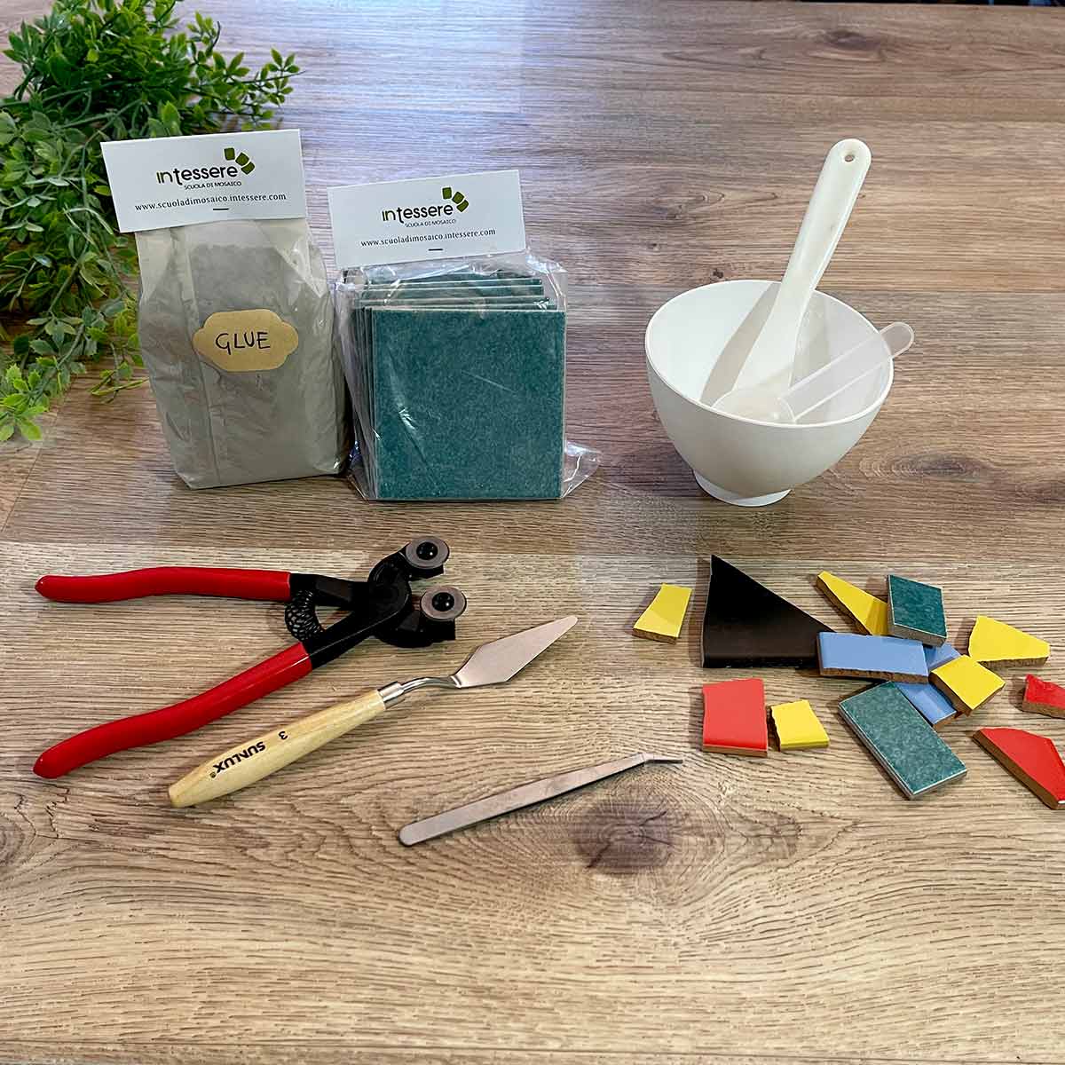 - Set completo di materiali e attrezzature per realizzare il tuo progetto di mosaico.