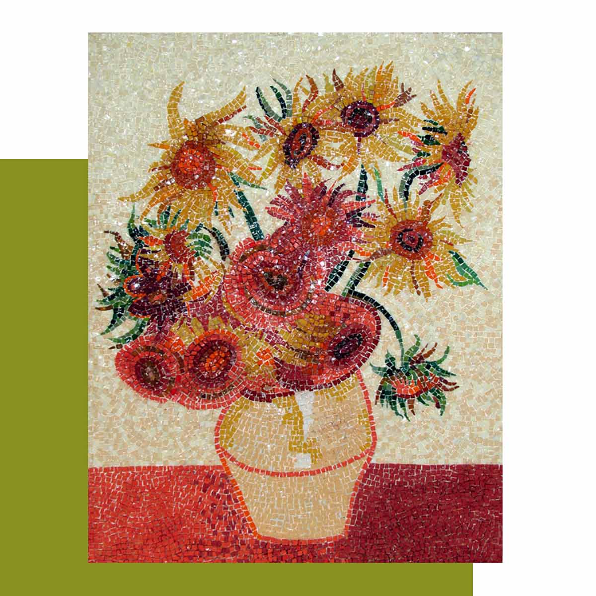Kit mosaico VASO CON GIRASOLI VAN GOGH tecnica diretta – Tessere in VETRO di Burano Originali