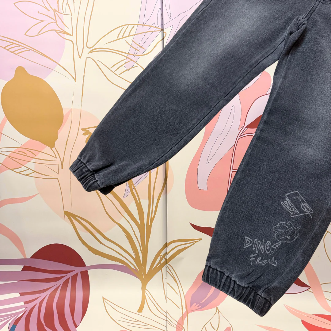 Pantalone tuta con elastico in vita e laccio, polsino finale. Bottoncini interni per regolarli e tasche. 96% cotone 4% elastene
