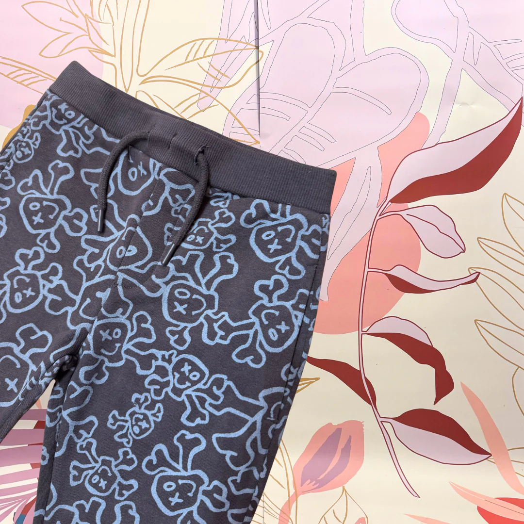 Pantalone tuta con elastico in vita e laccio. Bottoncini interni per regolarli e tasche. 70% cotone 30% poliestere