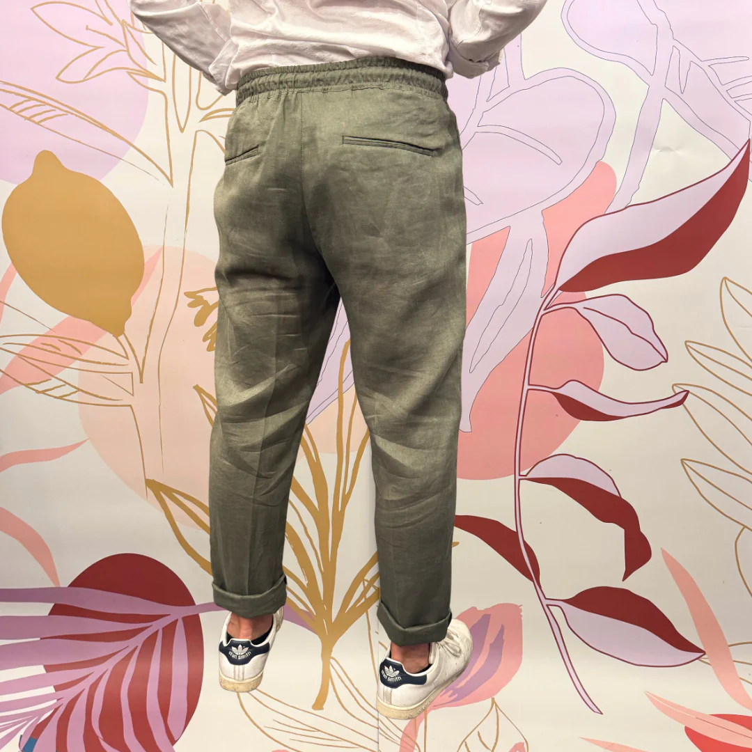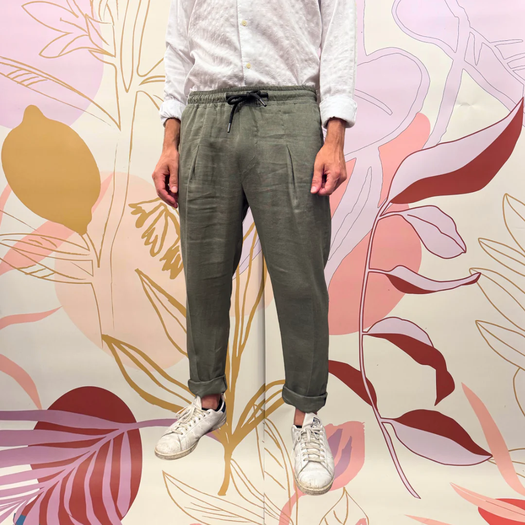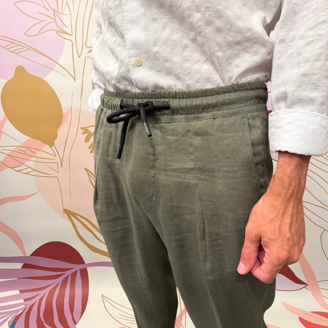 Pantalone con laccio ed elastico in vita. 100% lino