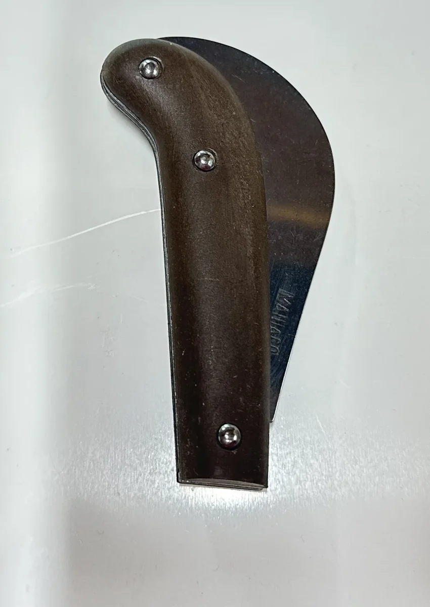 Roncola pieghevole con lama curva in acciaio temperato, progettata per potatura e giardinaggio professionale. Il manico ergonomico in legno di noce assicura presa salda e controllo preciso durante i lavori. Ideale per orto, vigneto e attività agricole, combina la tradizionale qualità artigianale italiana con durabilità e affidabilità. Falcetto richiudibile pratico e versatile per ogni esigenza di taglio.