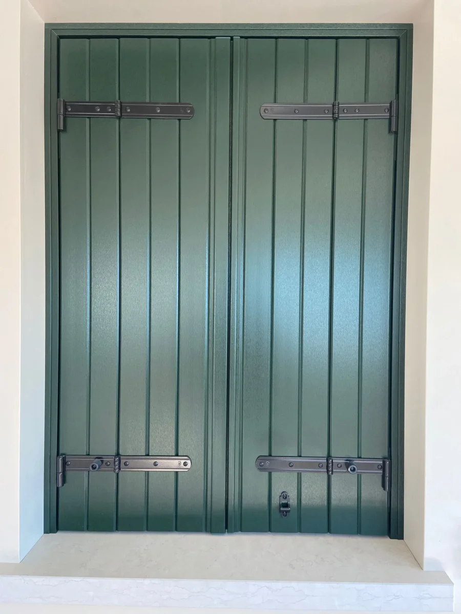 Scuro alla padovana con snodo e con telaio monoblocco. Completo di fermascuri a calamita ed accessori di serie.