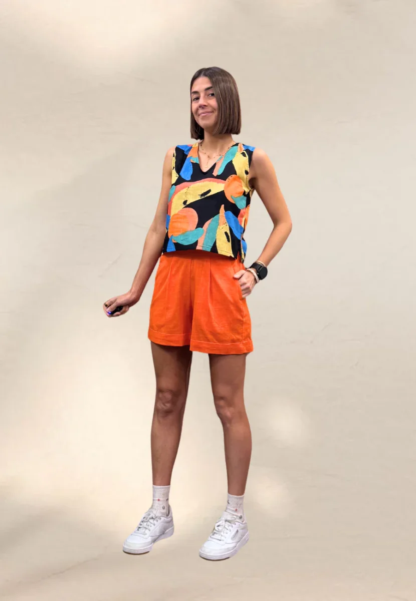 Short con elastico in vita, gamba morbida e tasche laterali.