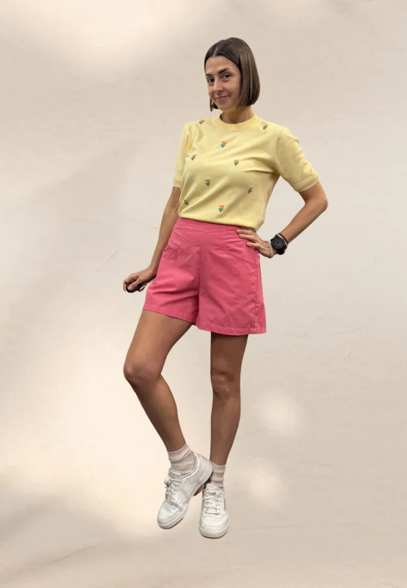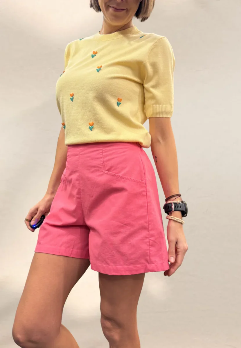 Shorts svasato con elastico in vita nella parte posteriore.