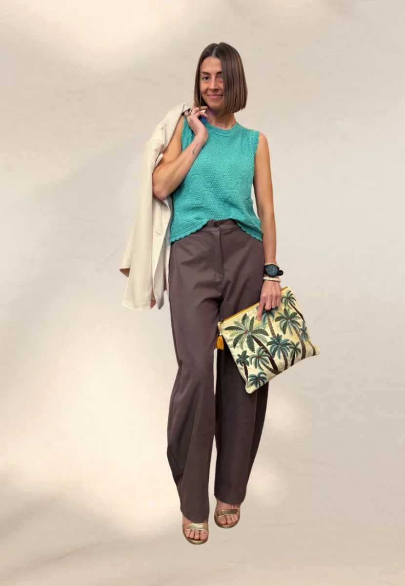 Top a canotta con spallina larga in maglia intrecciata.