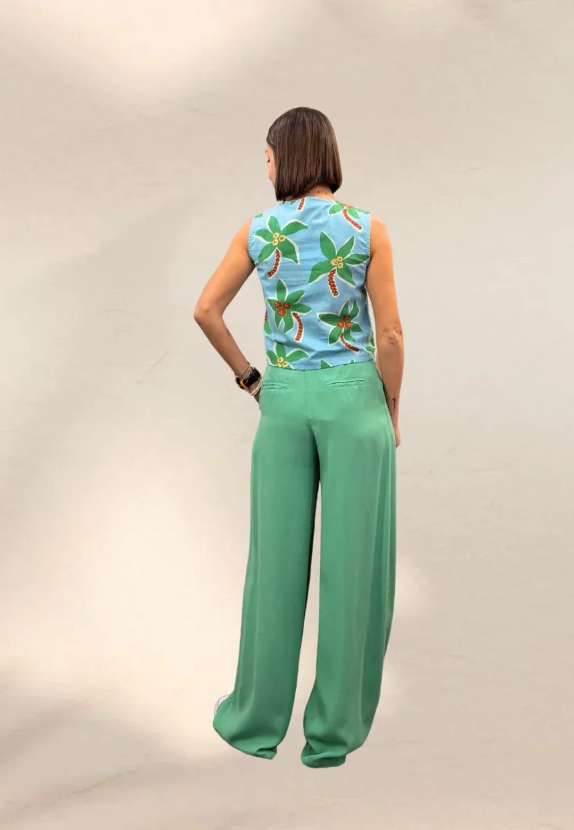 Top smanicato, vestibilità regolare.