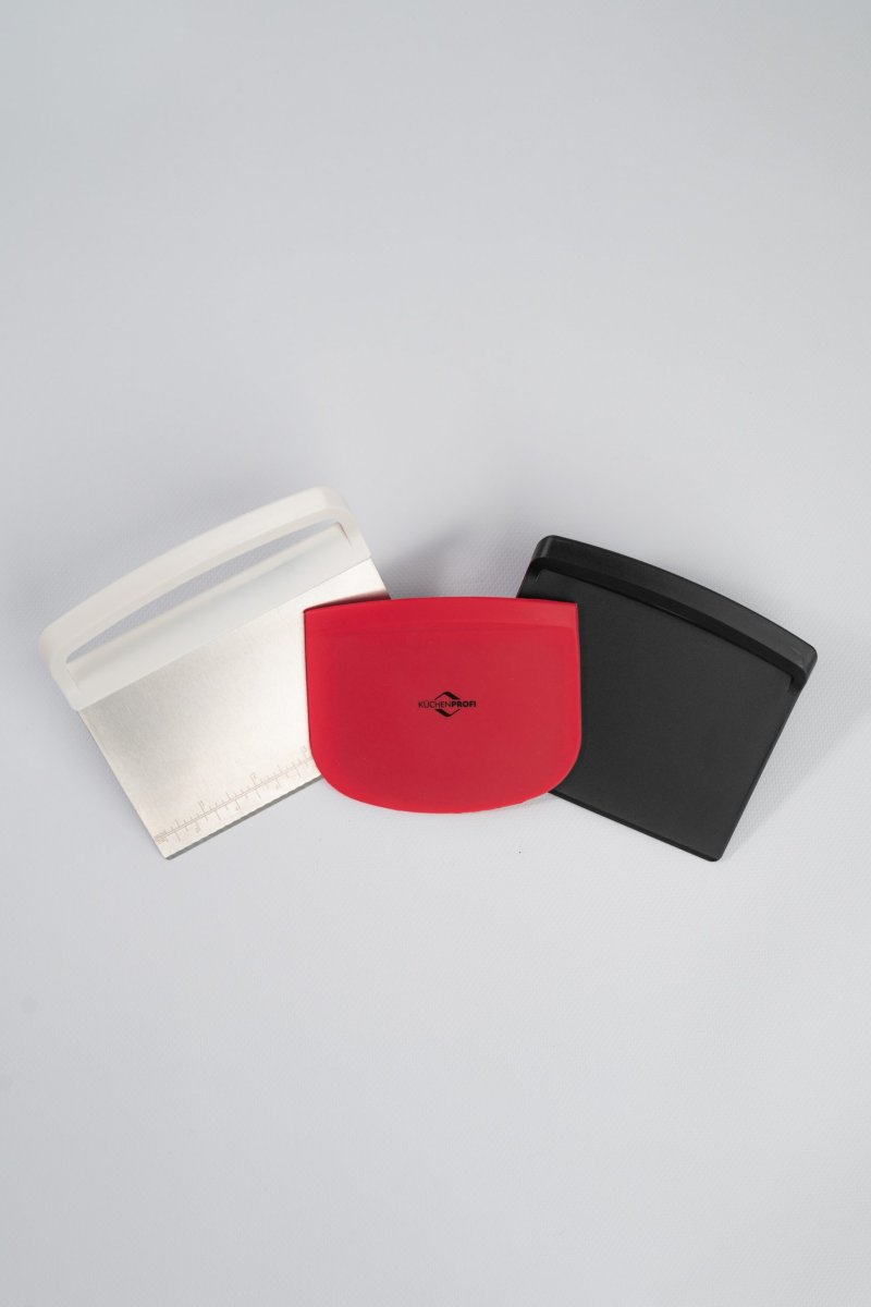 Set di spatole da cucina: spatola bordo flessibile, raschia pasta, taglia pasta.