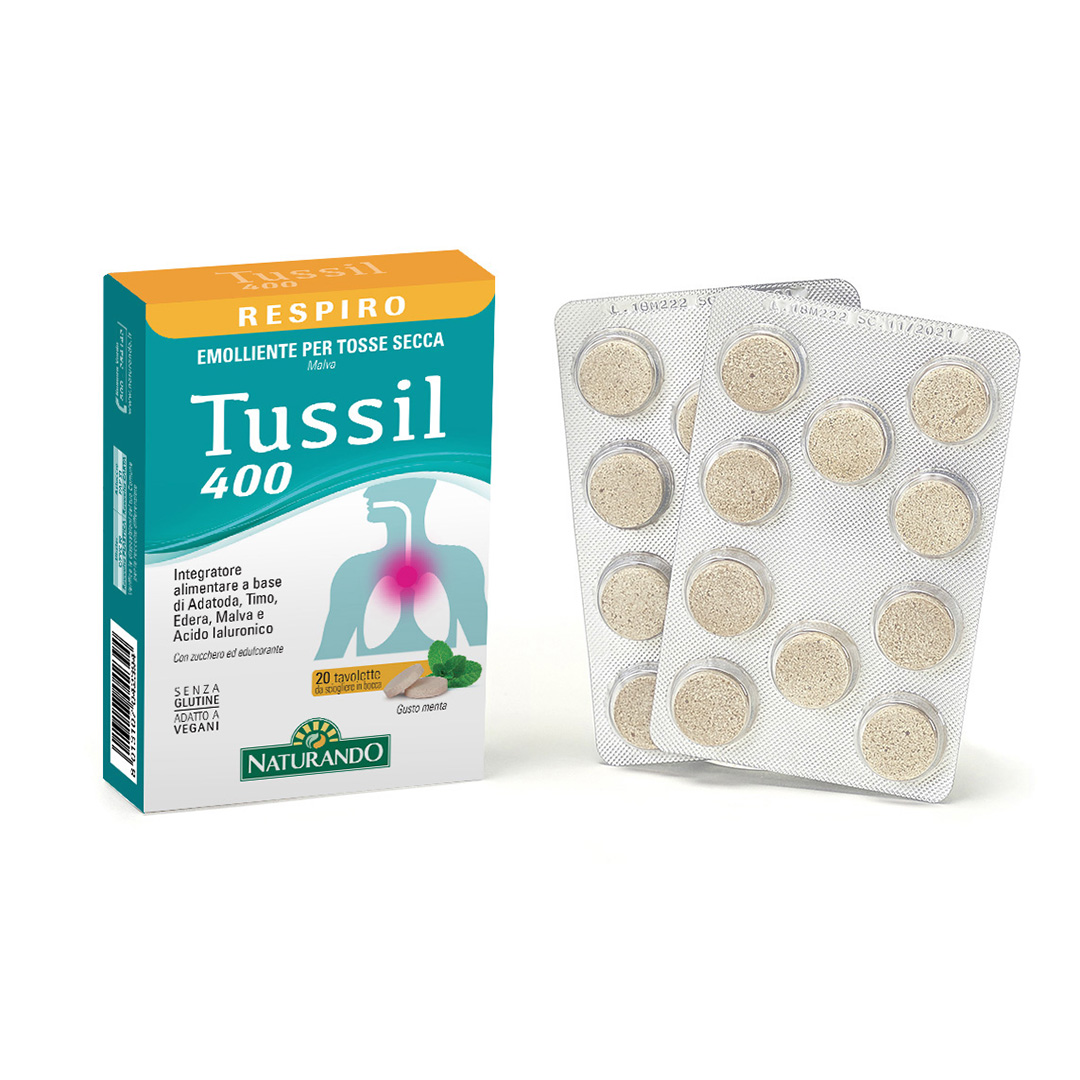 Integratore alimentare a base di Adatoda, Timo, Edera, Malva e Acido Ialuronico ad alto peso molecolare.