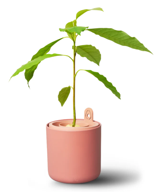 Dopo aver consumato un delizioso avocado, conserva il nocciolo, lavalo e rimuovi la buccia marrone esterna. Posiziona il nocciolo nel vaso per avocado con il lato rotondo verso il basso. Riempi d’acqua un portavaso o un piatto e inserisci il vaso per avocado. Attendi con pazienza e cambia l’acqua una volta alla settimana. Dopo 3 o 4 settimane, il nocciolo inizierà ad aprirsi e cresceranno le prime radici. Le prime foglie spunteranno invece dopo circa 6-8 settimane. Quando la pianta di avocado raggiunge un’altezza di circa 15 cm, sostituisci l’acqua con del terriccio. Posiziona la piantina in un luogo soleggiato e goditi il tuo mini albero di avocado!